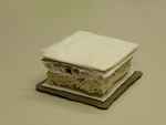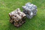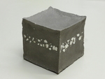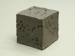 20151 kubus handgevormd met chamotte klei en daarna geglazuurd in goudkleur 1 kubus handgevormd met chamotte klei en gedeeltelijk bewerkt met gips